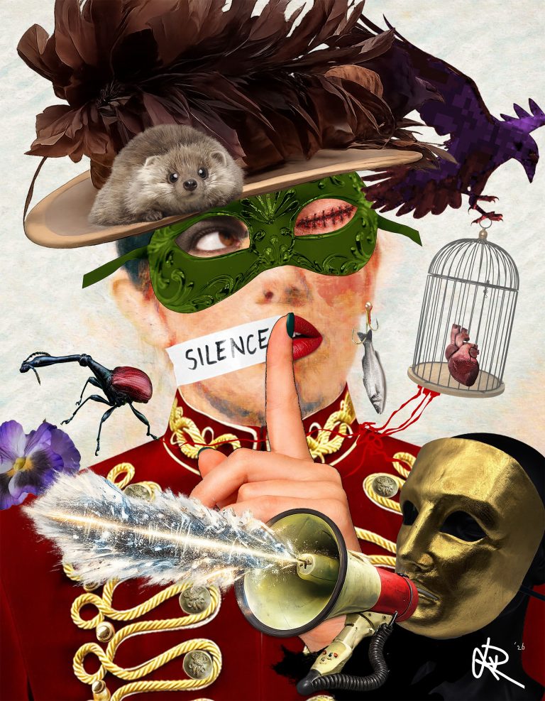 Each collage unfolds as a fragment, a scene suspended between fiction and reality. Together they form a sequence of shifting narratives, where irony and symbolism intertwine, and meaning is never fixed.